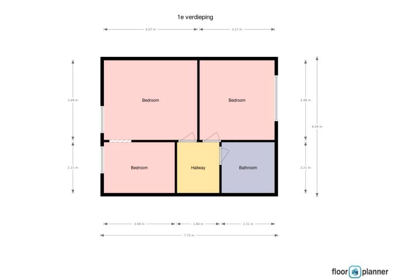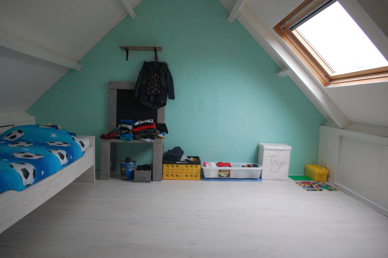 Op de 1e verdieping zijn twee slaapkamers. Een voorkamer van circa 11 m2 en een ouderslaapkamer met een inloopkast (voormalige kinderkamer). De badkamer is voorzien van een douche, hangtoilet, wastafel en wasmachineaansluiting. Op zolder is de 3e slaapkamer van circa 12 m2.
