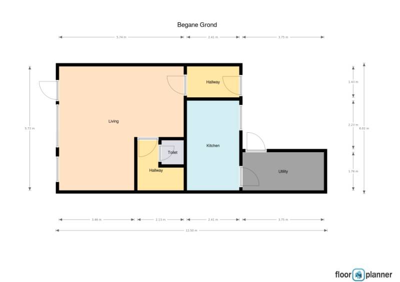 De begane grond bestaat uit een lichte woonkamer voorzien van vloerverwarming en een openslaande deur naar de tuin op het zuiden. De half open keuken heeft een vaatwasser, combimagnetron en gaskookplaat. Vanuit de keuken is de berging bereikbaar. In de voortuin staat ook nog een aparte fietsenberging. Het toilet zit in het halletje met de trap naar de 1e verdieping.